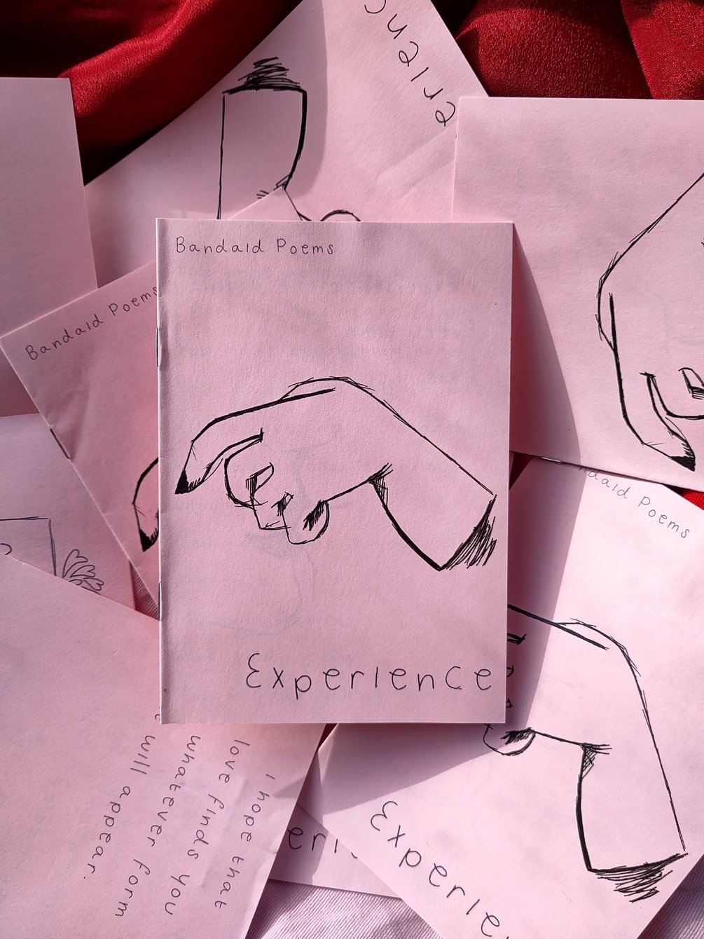 Experience is a six page, A6 poetry zine printed on pink paper. This is the last of a limited run of 25, and will not be reprinted.